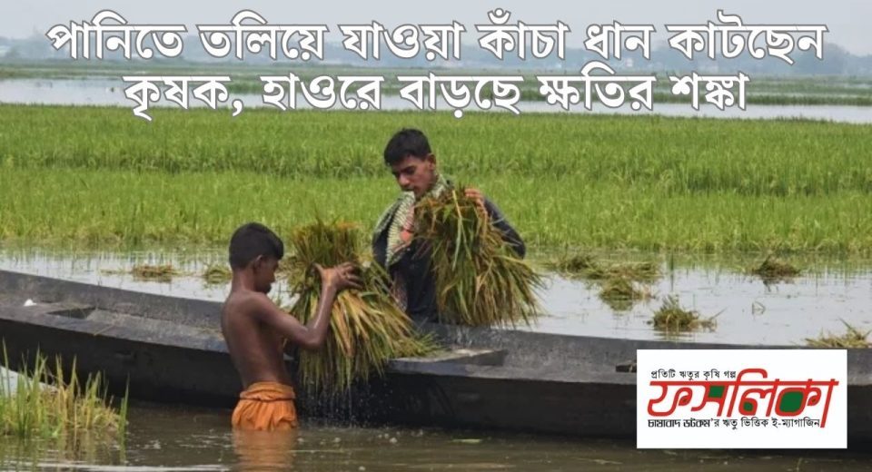হাওরে পানিতে তলিয়ে যাওয়া কাঁচা ধান কাটছেন কৃষক, বাড়ছে ক্ষতির শঙ্কা
